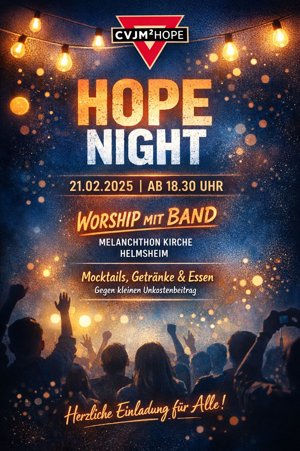Am 21.02.2026 ab 18.30 Uhr wollen wir gemeinsam einen Abend voller Hoffnung, Gemeinschaft, Musik und guter Impulse in der Melanchthonkirche Helmsheim erleben.