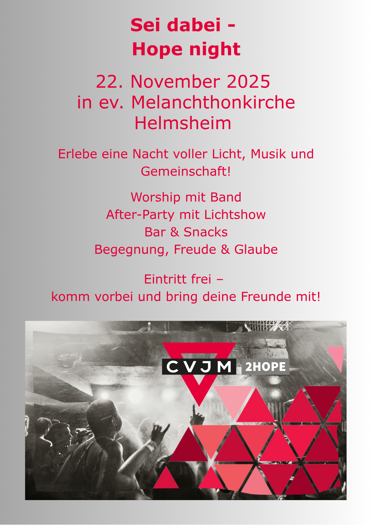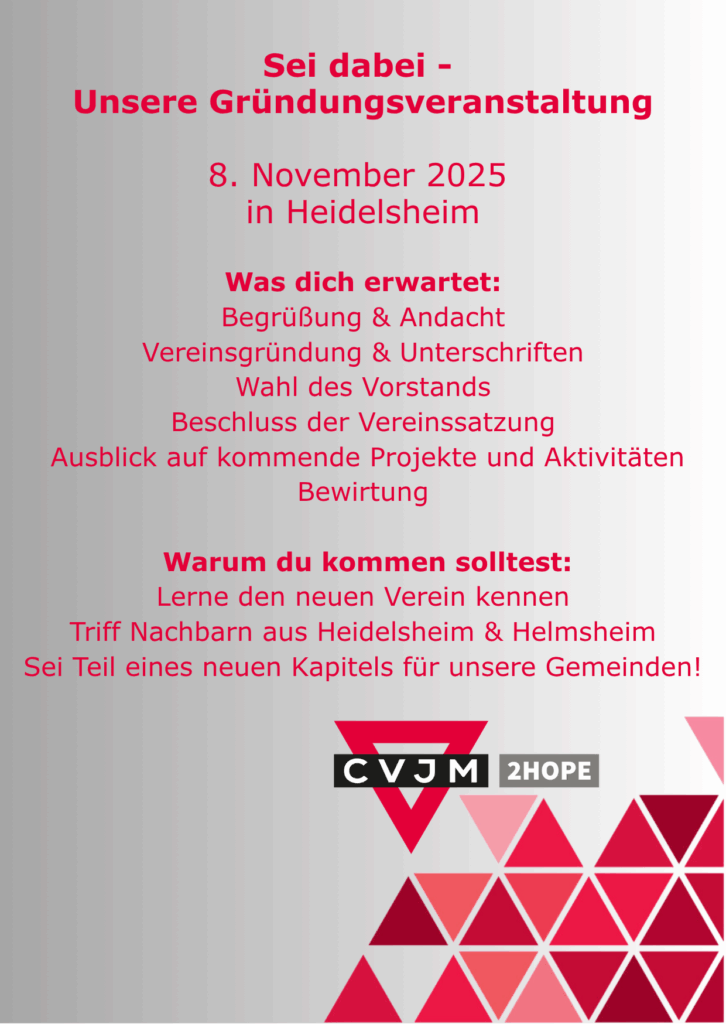 Die Gründung des Vereins CVJM 2HOPE e.V. fand am Samstag, 8. November 2025 um 17 Uhr im Gemeindezentrum Heidelsheim statt.